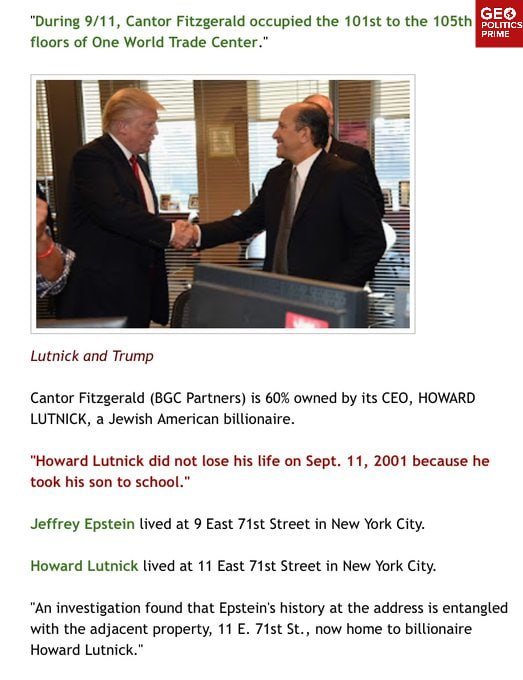 ちなみに、彼らの会社であるカンター・フィッツジェラルドは、2001年9月12日にFRBの所有者が中国王族に返済する義務があった金の管理を担当していました。しかし、貿易センタービルが爆破された後、金は南米のブッシュ牧場に行き着きました。