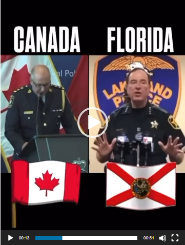 カナダもまた、国民の武装解除に尽力しています。私の甥は最近、自宅に家宅捜索を受け、合法的に登録された銃を「適切に保管していなかった」という理由で没収されました。政府はまた、たとえ自宅に侵入されても自衛をしないよう国民に呼びかけています。カナダとフロリダの違いについては、こちらの動画をご覧ください。