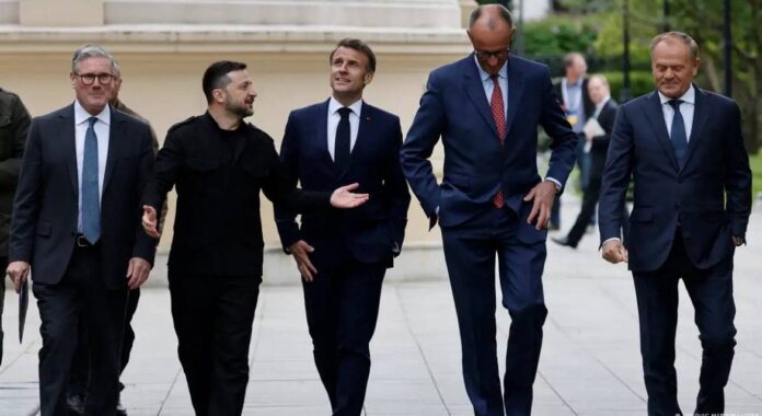ゼレンスキー氏が最初のドミノ倒しである理由は、ウクライナの数千億ドルに上る行方不明金に関する米軍のホワイトハット汚職捜査が「有志連合」のリーダー全員につながるからだ。下の写真に見られるように、これには「マクロン」、カナダのマーク・カーニー刑事大臣、英国のキール・スターマー刑事大臣、ドイツのフリードリヒ・メルツ首相が含まれる。