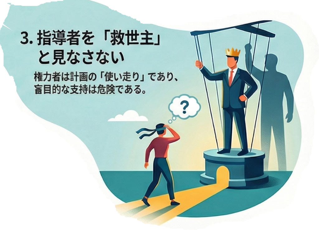 • 無批判な支持を避ける: 特定の指導者を盲目的に支持し、他者の同様の行為を批判するという「二重基準」をやめ、権力の背後にある真の意図を直視する必要があります。