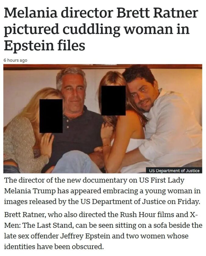 また、メラニア・トランプ米大統領夫人に関する新たなドキュメンタリーの監督ブレット・ラトナー氏が、金曜日に米司法省が公開した画像の中で若い女性を抱きしめる姿が映っている。