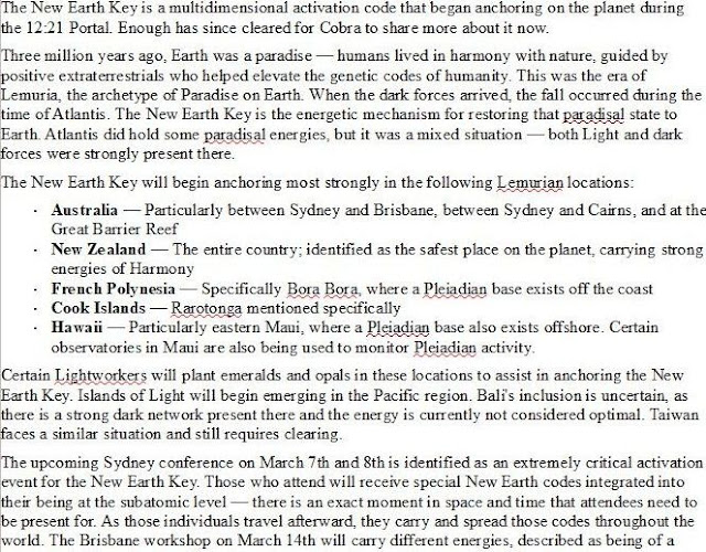 3月7日以降、フェニックス・アセンションワークショップのノートの以下の抜粋にあるように、新地球のキーが地表に積極的に定着し始めます。