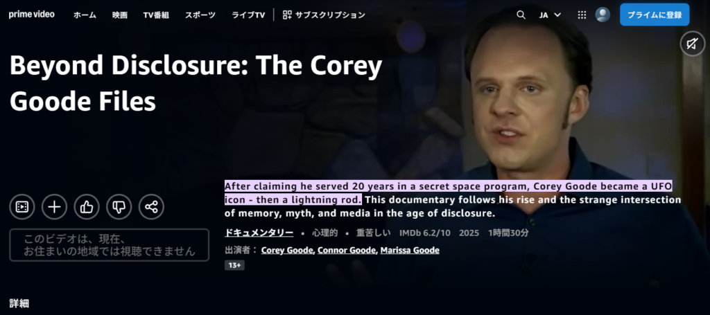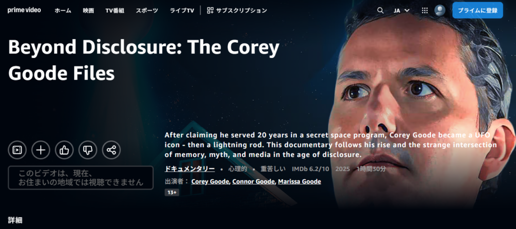 「Beyond Disclosure」とは:『Beyond Disclosure: The Corey Goode Files』は、20年間の秘密宇宙プログラムへの参加を主張するコーリー・グッド氏に焦点を当てた2025年のドキュメンタリー映画です。この映画は、彼がUFO界のアイコンから論争の的となるまでの過程を描き、情報開示時代における記憶や神話の交錯を探求する内容となっています。主な詳細は以下の通りです。