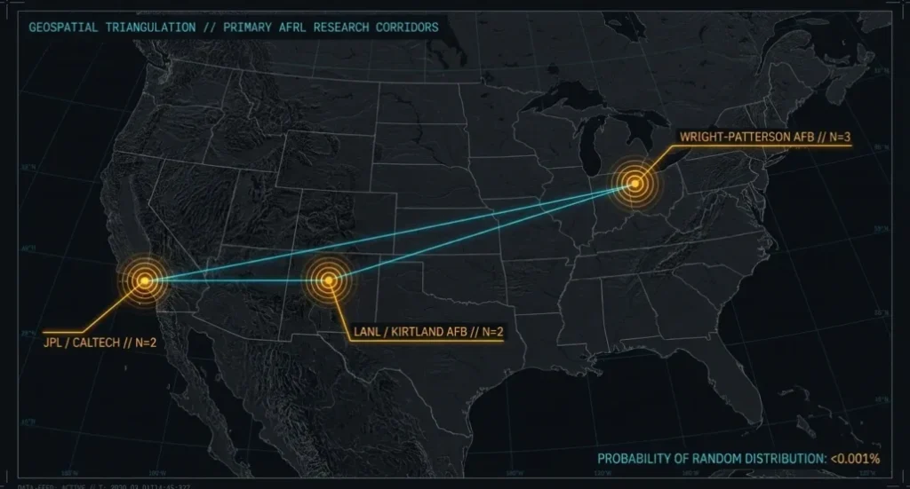 これらの事件は、アメリカの防衛航空宇宙研究の3つの地理的拠点である、南カリフォルニア、ニューメキシコ、オハイオに集中しています。