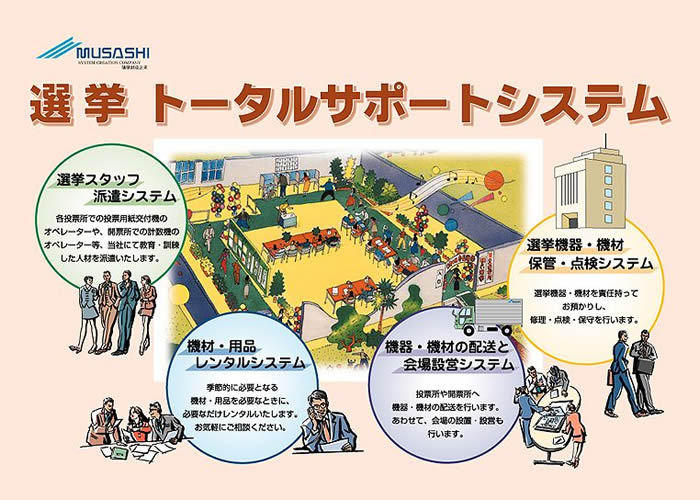 このように、ムサシ一社で選挙の企画、開発、製造、販売、さらには当日の運営や会場設営までを一手に引き受けている状態(選挙業務総合受託事業)にあると記されています。
