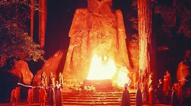 ボヘミアン グローブの一連のキャンプのうちの 1 つでのキャンプファイヤー。