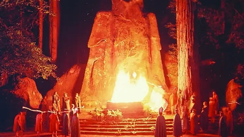ボヘミアン グローブの一連のキャンプのうちの 1 つでのキャンプファイヤー。