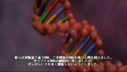 彼らは実験室で違うDNA、二十螺旋のDNAを持つ人間を創りました。オリジナルDNAは細胞内に残しましたが、ばらばらにされ全く機能しないようにしました。
