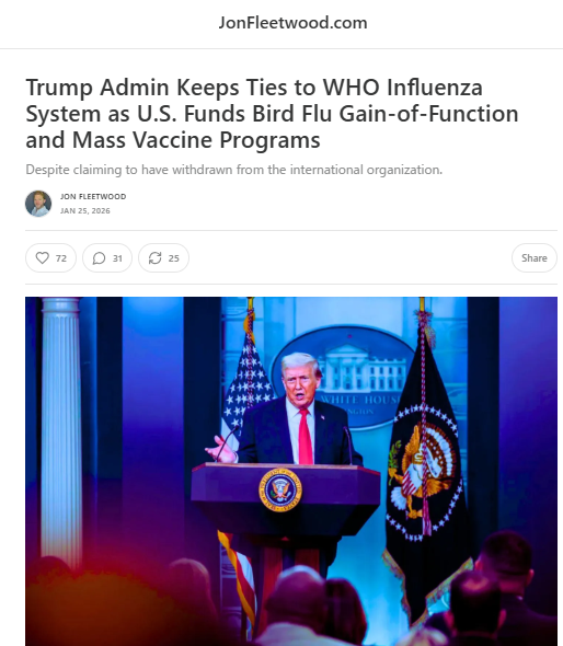 トランプ政権、鳥インフルエンザの機能獲得研究と大量ワクチン計画に資金提供しながらWHOインフルエンザシステムとの連携を維持