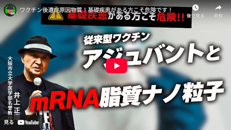 ワクチン後遺症原因物質!基礎疾患がある方 … 続きを読む 「基礎疾患がある人こそ危険!」アジュバントとmRNA脂質ナノ粒子は“ワクチン後遺症原因物質”