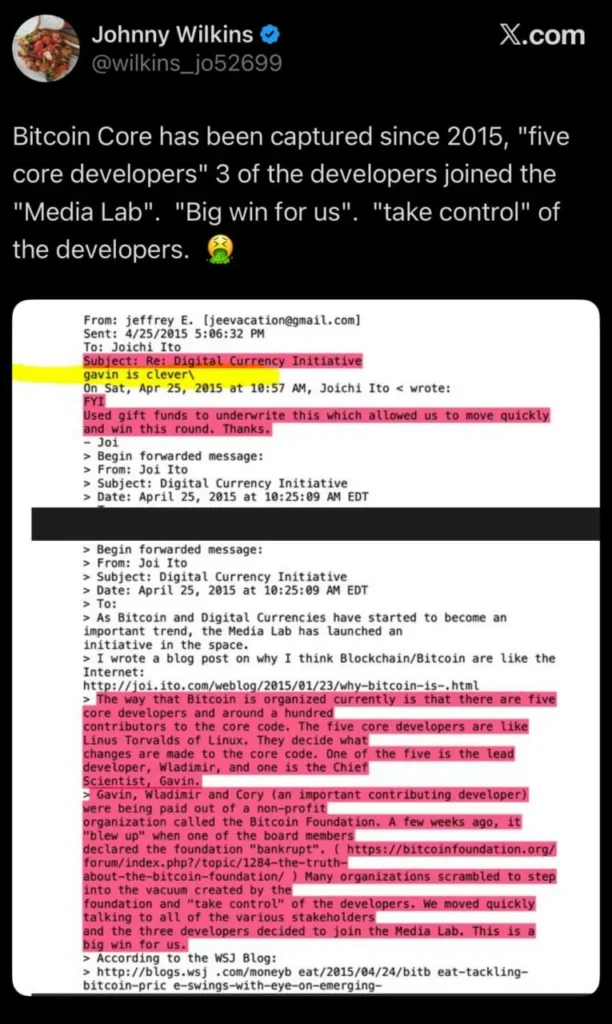 2015年のBitcoin Core買収に伴い、「5人のコア開発者」がメディアラボに移籍しました。「これは私たちにとって大きな利益です。」