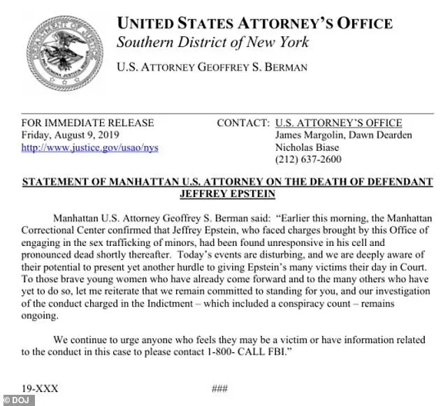 エプスタインのファイルで見つかった連邦政府の文書によると、エプスタインは早くも8月9日に死亡宣告を受けていたが、これは8月10日とされている公式の死亡日と矛盾している。